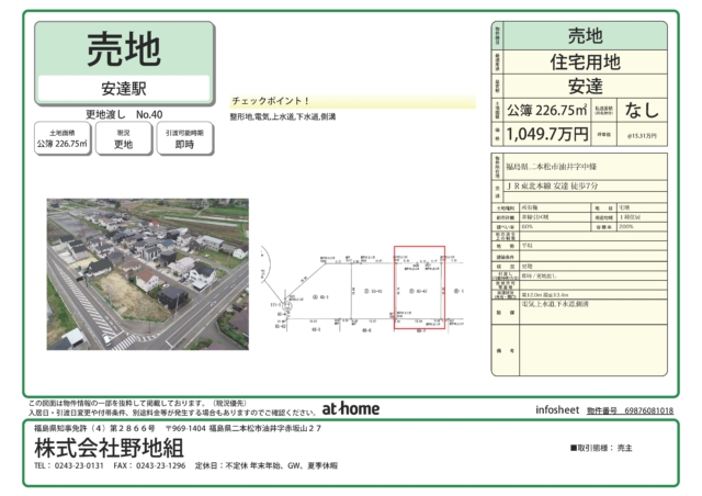 □敷地面積:No.40 226.75㎡ No.41 225.72㎡ No.42 262.13㎡
